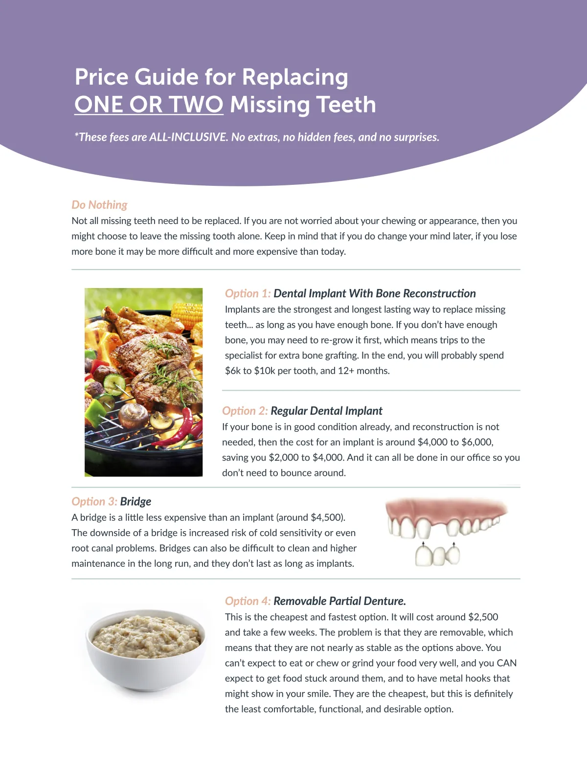 At our practice, we believe in NO SURPRISES, especially when it comes to your final bill! That’s why all of our fees are ALL-INCLUSIVE, with no extras or hidden fees, ever.